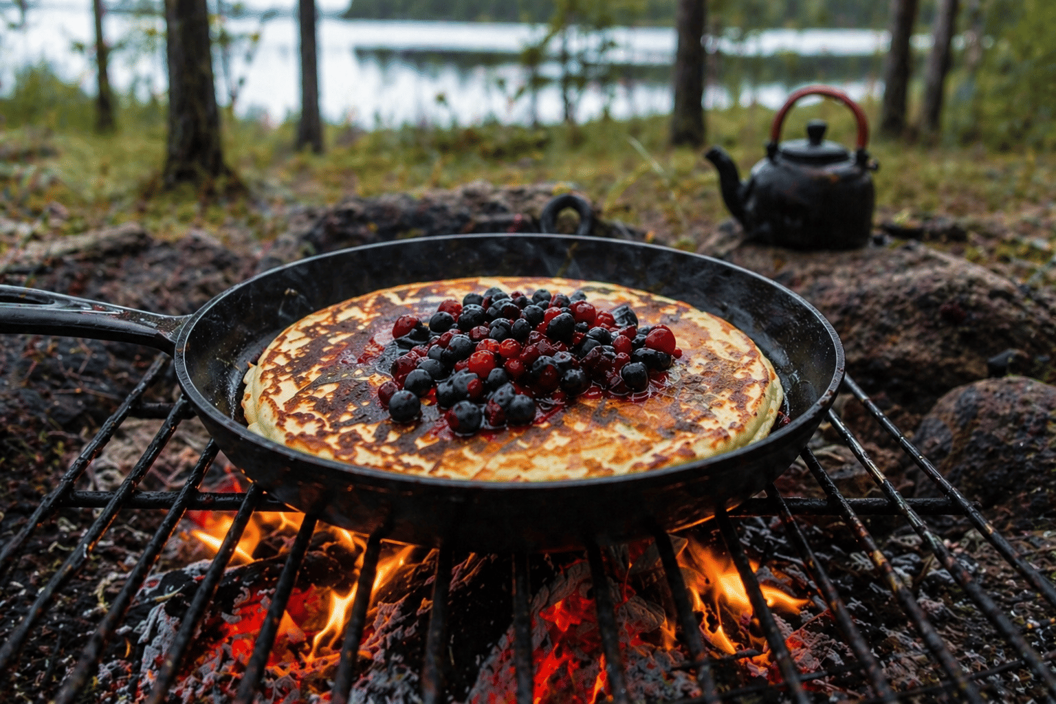 After gathering berries or enjoying the locally made jam, head to a cozy campfire spot where you prepare delicious pancakes together over an open fire. Fresh berries or jam serve as the perfect topping, simple, authentic, and incredibly delicious.